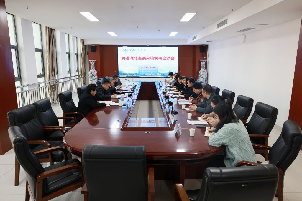 本网讯(通讯员 林宝虎)12月27日,全国政协委员、民进湖北省委主委胡仲军一行来我校调研。学校党委书记郑丹凤,党委常委、统战部长谭艳全程陪同并出席调研座谈会。