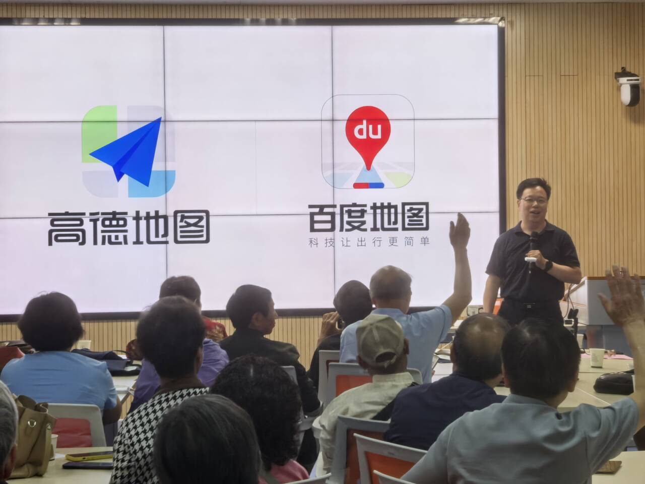 讲座后半程聚焦老年人日常生活需求,数字生活实用技能教学。针对老年人出行需求,李教授手把手教授高德地图、百度地图的使用技巧。从搜索目的地到设置公交路线,再到语音导航功能,老同志们跟着一步步操作,纷纷表示“以后出门再也不用担心找不到路了”。