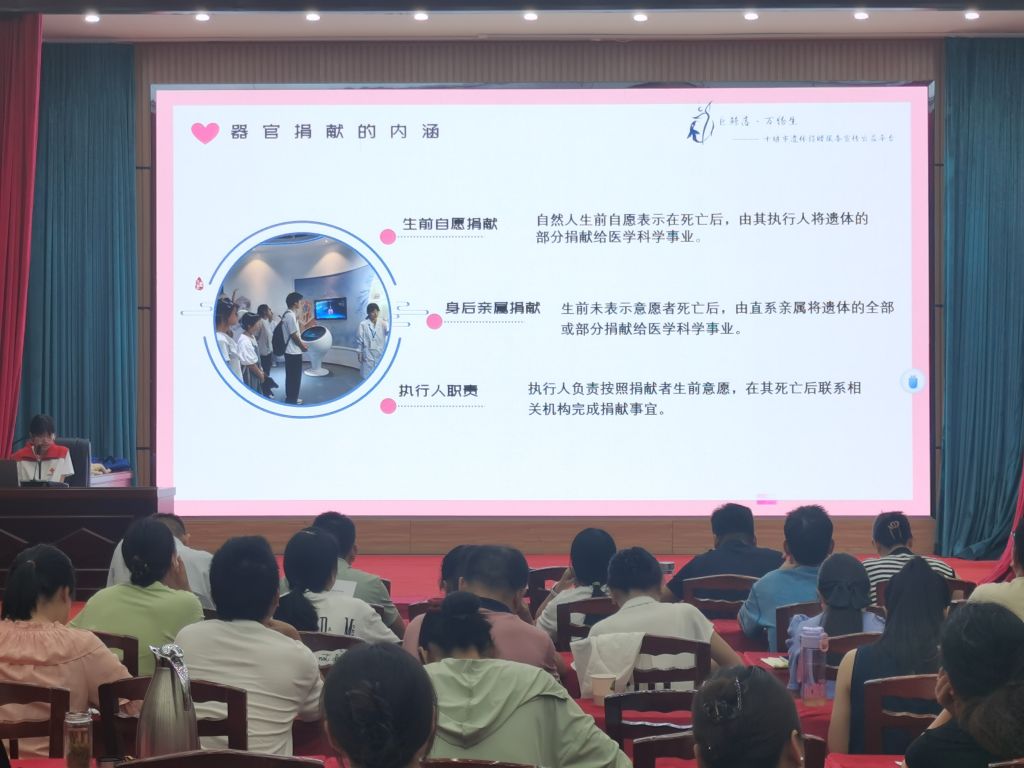 本网讯(通讯员 张伟 刘小情)6月13日,湖北医药学院“巨鲸落·万物生”遗体器官捐献志愿服务队走进十堰市茅箭区东城开发区,为来自辖区120余名基层干部及社区骨干,献上了一场主题为“同心聚力·共同缔造”的生命教育专题知识讲座。