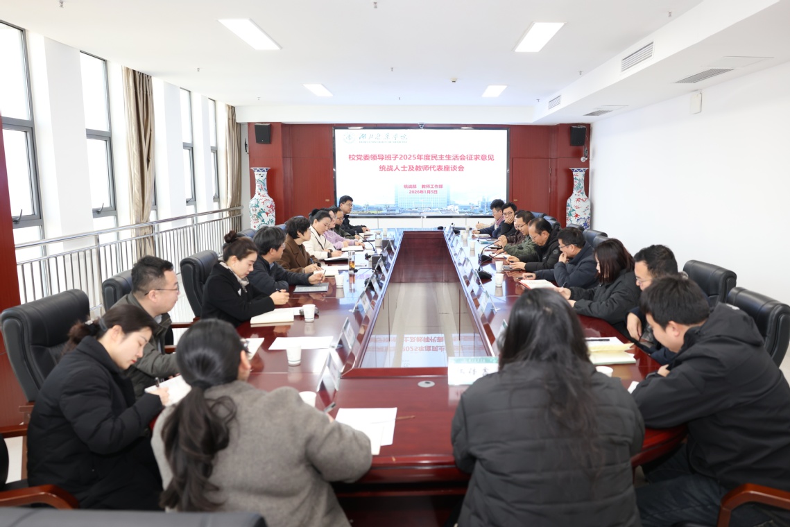 本网讯(通讯员欧阳妮)为高质量开好2025年度校党委领导班子民主生活会,广泛听取各方面意见,1月5日,学校组织召开统战人士及教师代表征求意见座谈会,专题听取党外人士和教师代表对校领导班子及成员的意见和建议。座谈会由校党委常委、副校长统战部部长谭艳主持,校党委书记郑丹凤出席并讲话。
